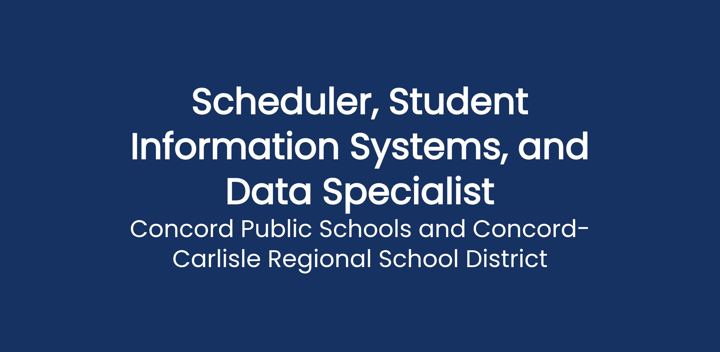 Concord-Carlisle High School is seeking a detail-oriented, analytical, and collaborative professional to manage the schoolβs master schedule and data integrity. This role is critical in ensuring that our educational vision translates into a functional daily reality for students and staff. The candidate will have excellent data management skills.
