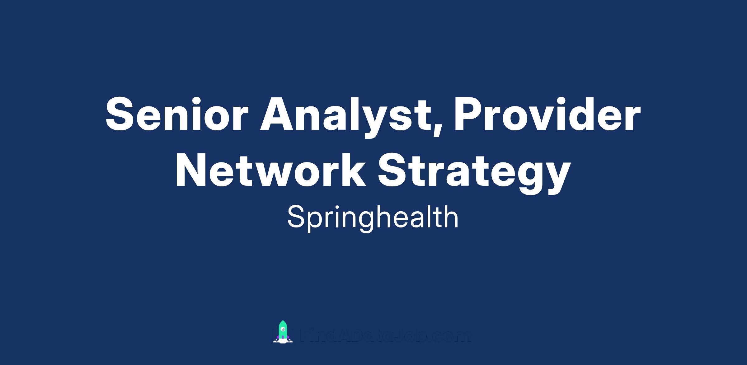 Reporting to Associate Director, Network Strategy & Analytics, the Sr. Analyst, Provider Network Strategy will own predictive modeling, strategic planning, and process improvement to ensure our provider network is positioned for long-term success.