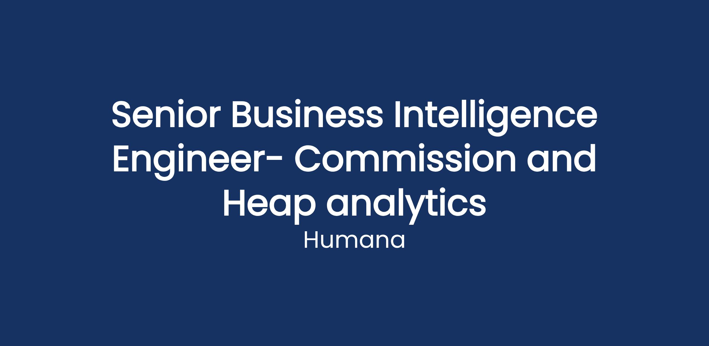 We are looking for a Senior Business Intelligence Engineer to lead analytics initiatives supporting sales commission programs and digital product analytics using Heap within a healthcare environment. This role partners with Sales Operations, Finance, Product, and Engineering to ensure accurate commission reporting, actionable insights, and scalable analytics solutions that support growth, compliance, and operational excellence.
