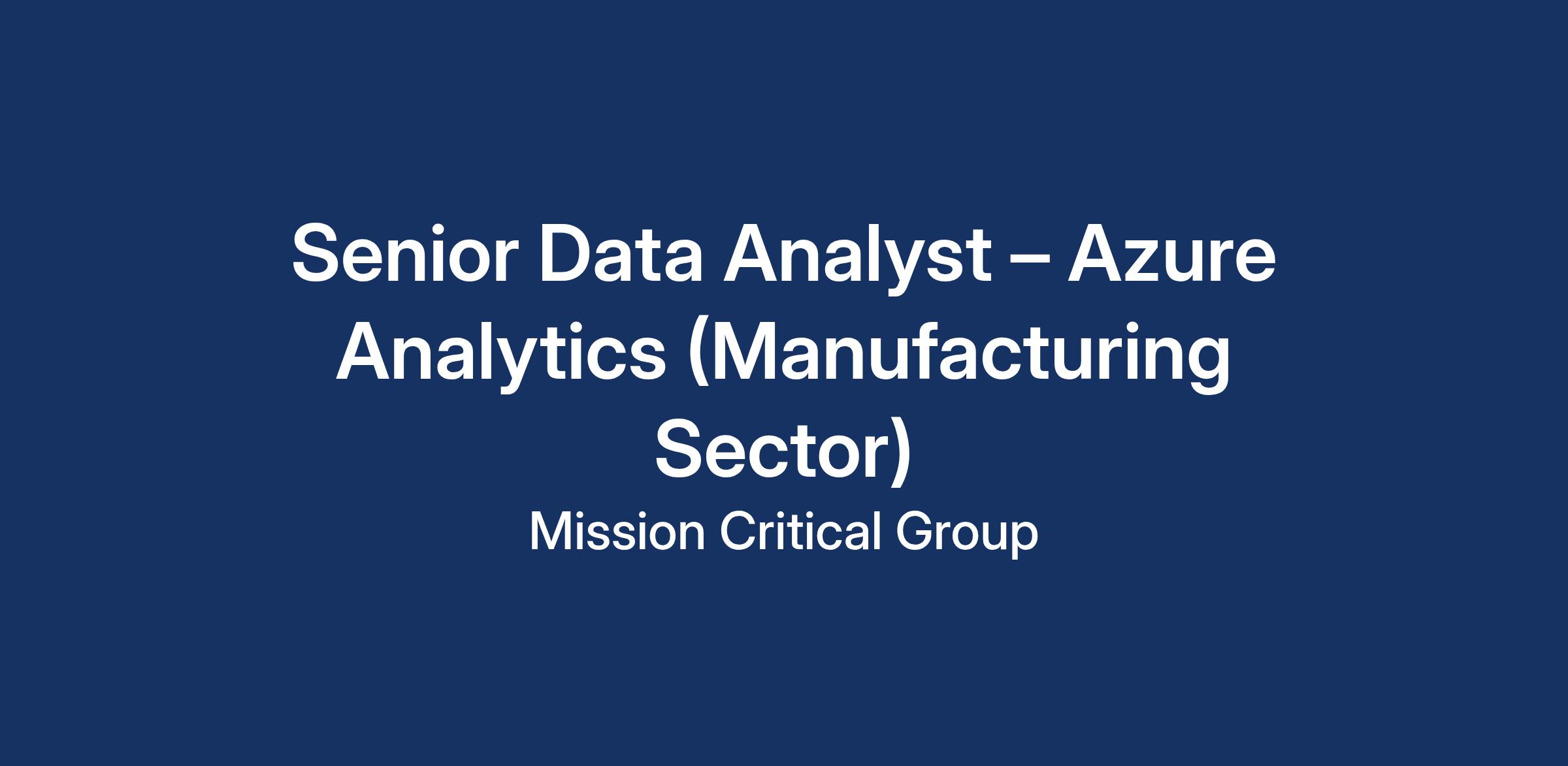 We are seeking an experienced Senior Data Analyst with strong expertise in Azure Analytics and Microsoft data technologies, specifically within a manufacturing environment. This role will drive data-led decision-making across production, supply chain, quality, maintenance, and operational excellence functions. The ideal candidate understands both advanced analytics and the complexities of modern manufacturing, including machine data, process optimization, OEE, and IIoT-driven insights.