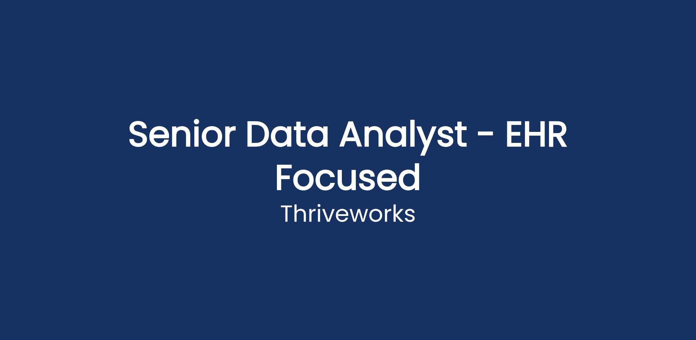 Senior Data Analyst - EHR Focused - RemoteΒ