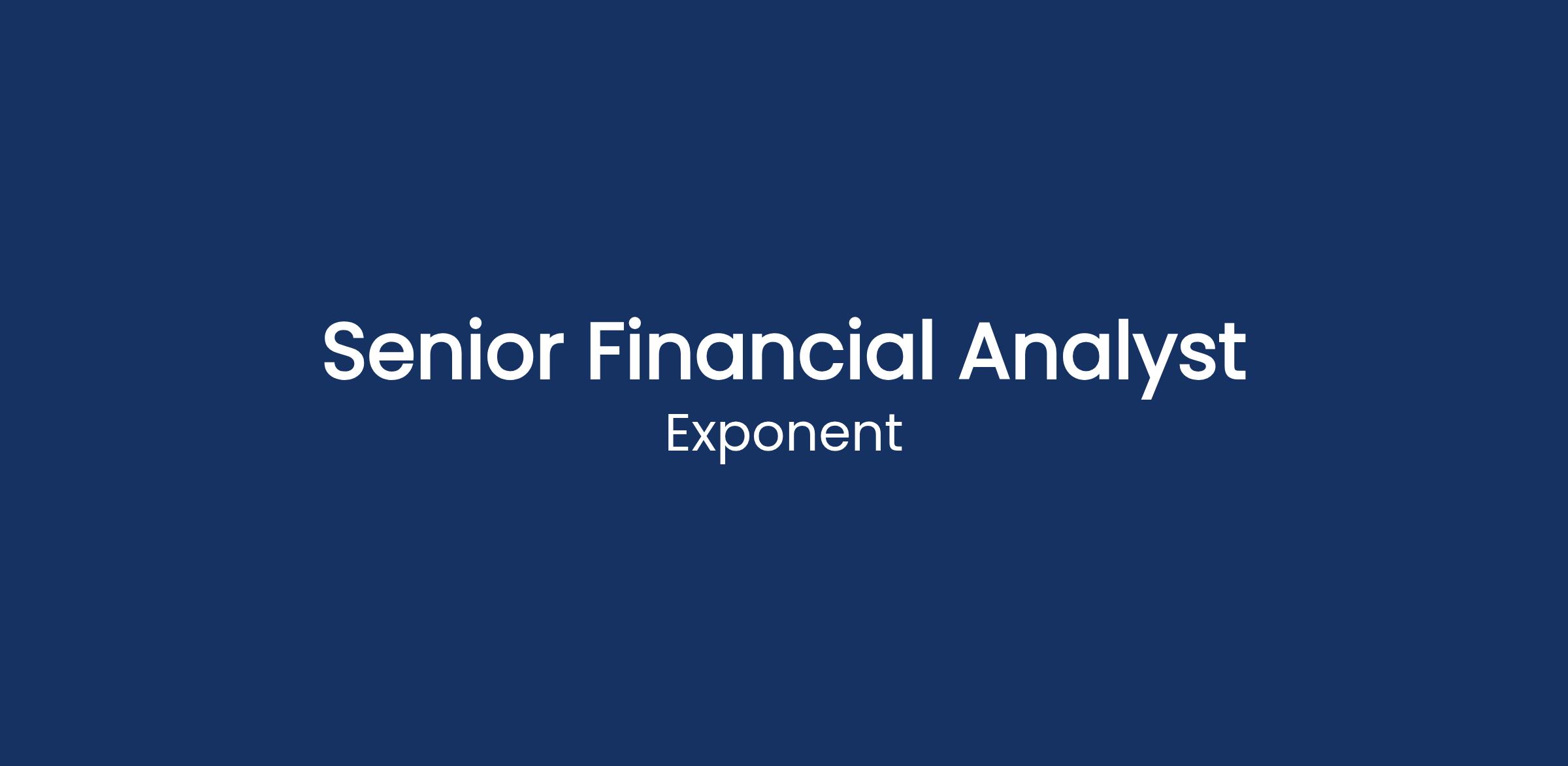 Exponent is currently seeking aΒ Senior Financial AnalystΒ to join our Finance Group.Β This position will be based in our Menlo Park, CA office. This position will be responsible for manipulating large datasets to bring insights into our business performance.