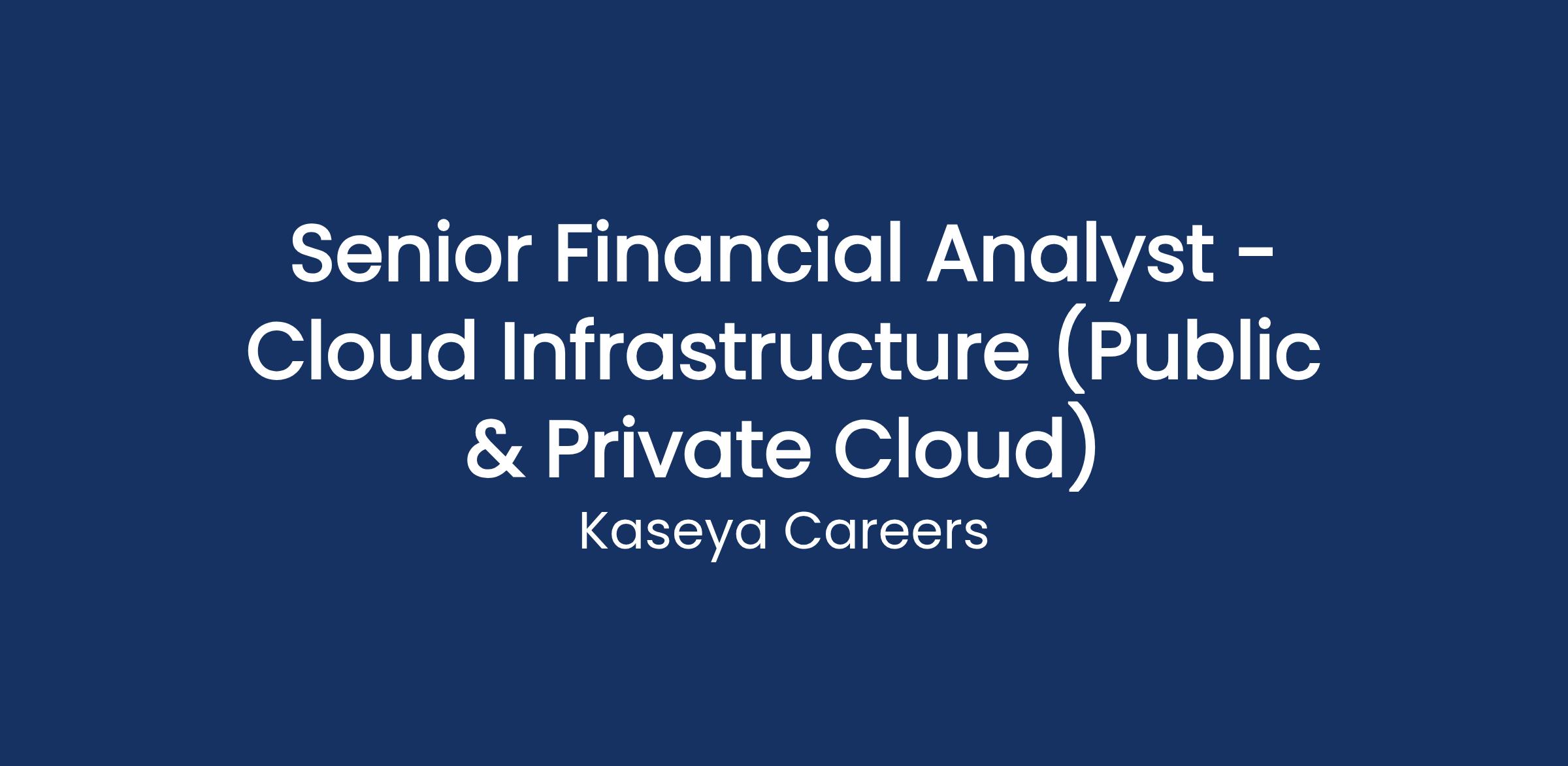 Join us as a Senior Financial Analyst supporting our cloud infrastructure portfolio across public and private cloud. In this role, you will drive financial planning, consumption insights, and investment analytics that help engineering, infrastructure, and procurement leaders make better decisions. Weโre looking for someone hands-on, data-driven, and comfortable engaging senior stakeholders to drive accountability.