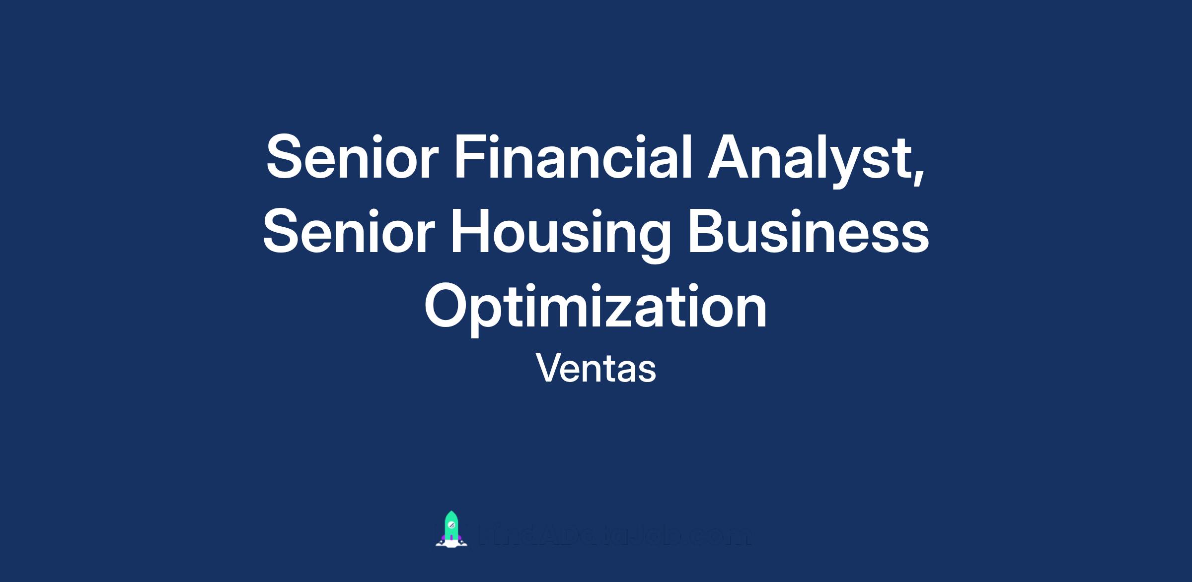 The Senior Financial Analyst, Senior Housing Business Optimization is a key member of the newly-formed Senior Housing Business Optimization group within Ventas.