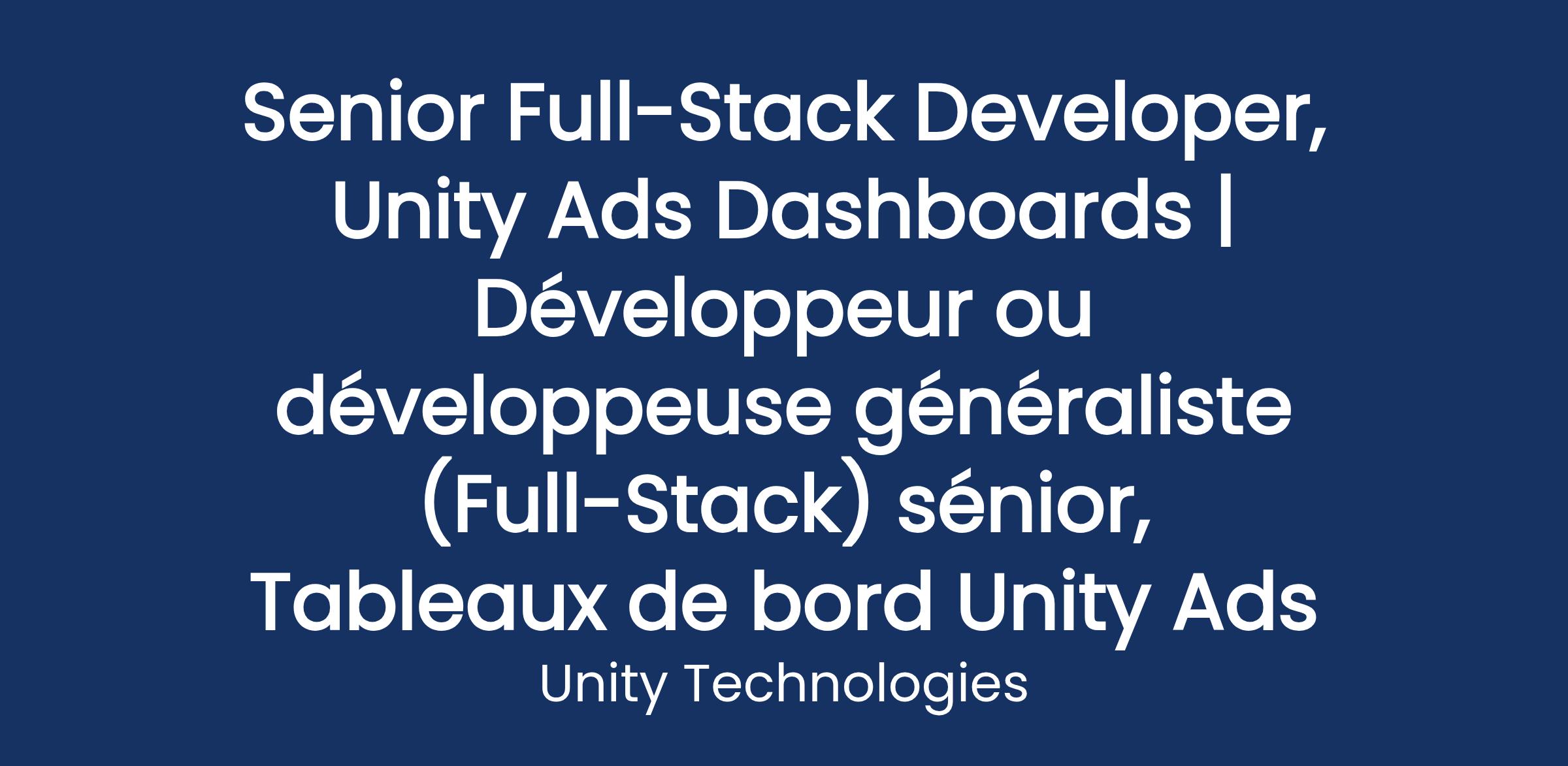 En tant que développeur full stack senior, vous jouerez un rôle clé dans le développement et la maintenance de nos tableaux de bord Unity Ads. Vos responsabilités comprendront la conception et la mise en œuvre de systèmes logiciels robustes, évolutifs et sécurisés, la collaboration avec des équipes multidisciplinaires pour définir les besoins, ainsi que l’amélioration continue de la performance et de la fiabilité de nos produits. Il s’agit d’un poste qui exige une solide expertise frontend, combinée à une prise en charge des responsabilités backend.
