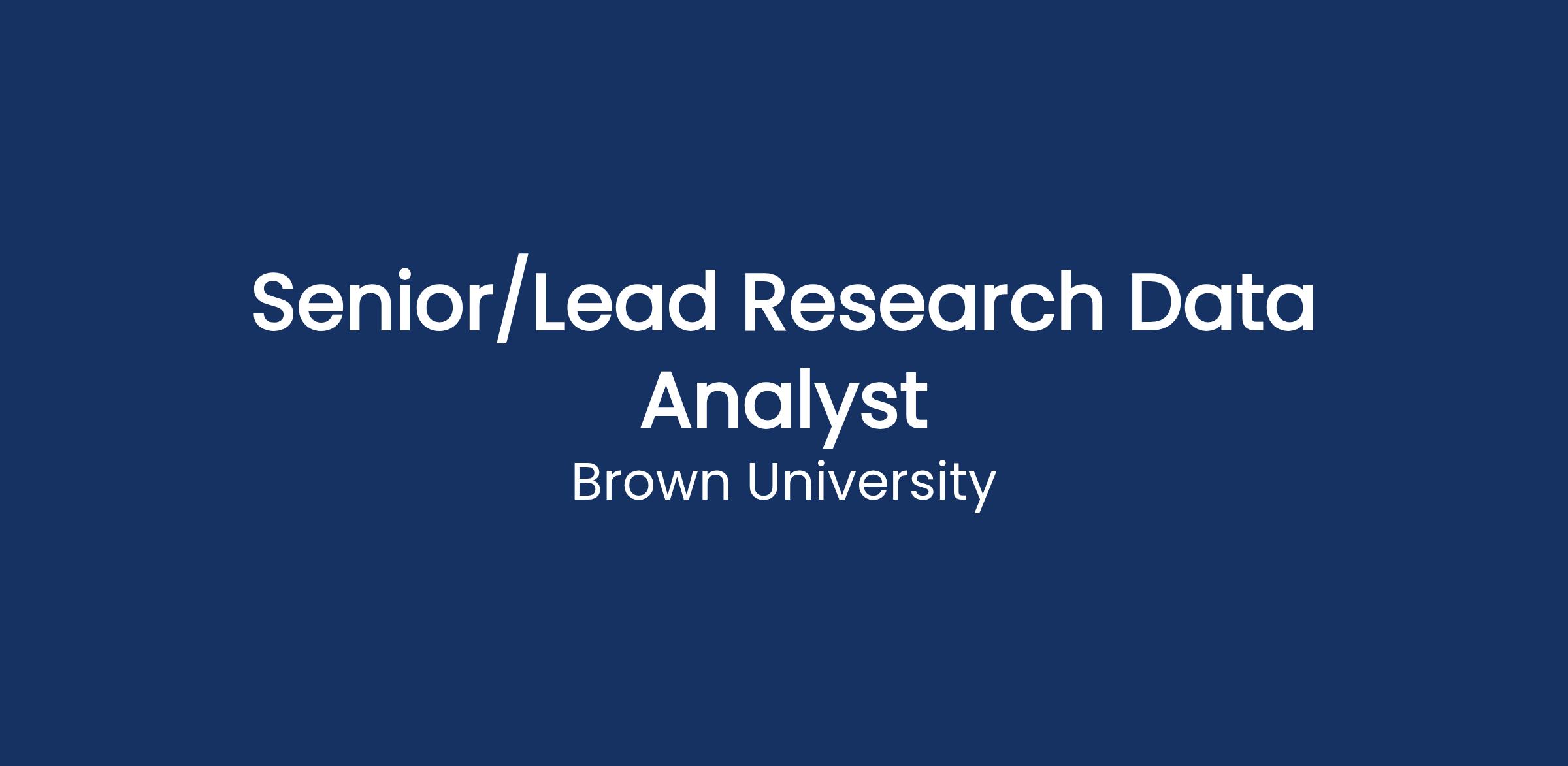 Senior/Lead Research Data AnalystDepartment:
