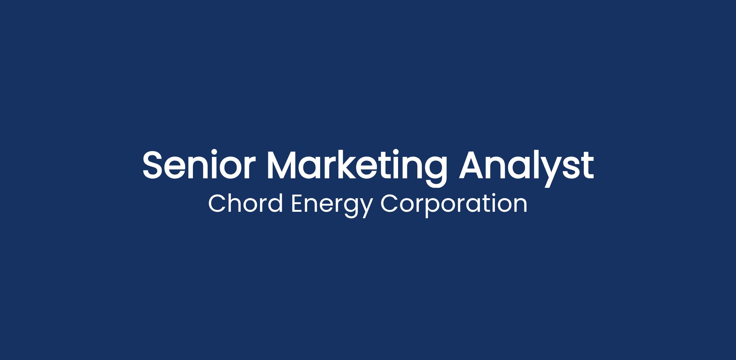 The Senior Marketing Analyst will be responsible for supporting commercial business development of Chord Energyβs midstream assets. This includes contributing to the assessment of optimizing existing midstream assets, building new midstream assets, and acquiring midstream assets. This individual will also be involved in negotiations with 3rd party midstream companies for crude gathering and produced water gathering and disposal for Chord operated production. Beyond supporting Chordβs Marketing and Midstream efforts in a variety of ways from ad hoc analytics to commercial negotiations and contract management, this position requires the ability to work in a fast-paced, fluid environment and the willingness to be flexible with the demands of a growing company.