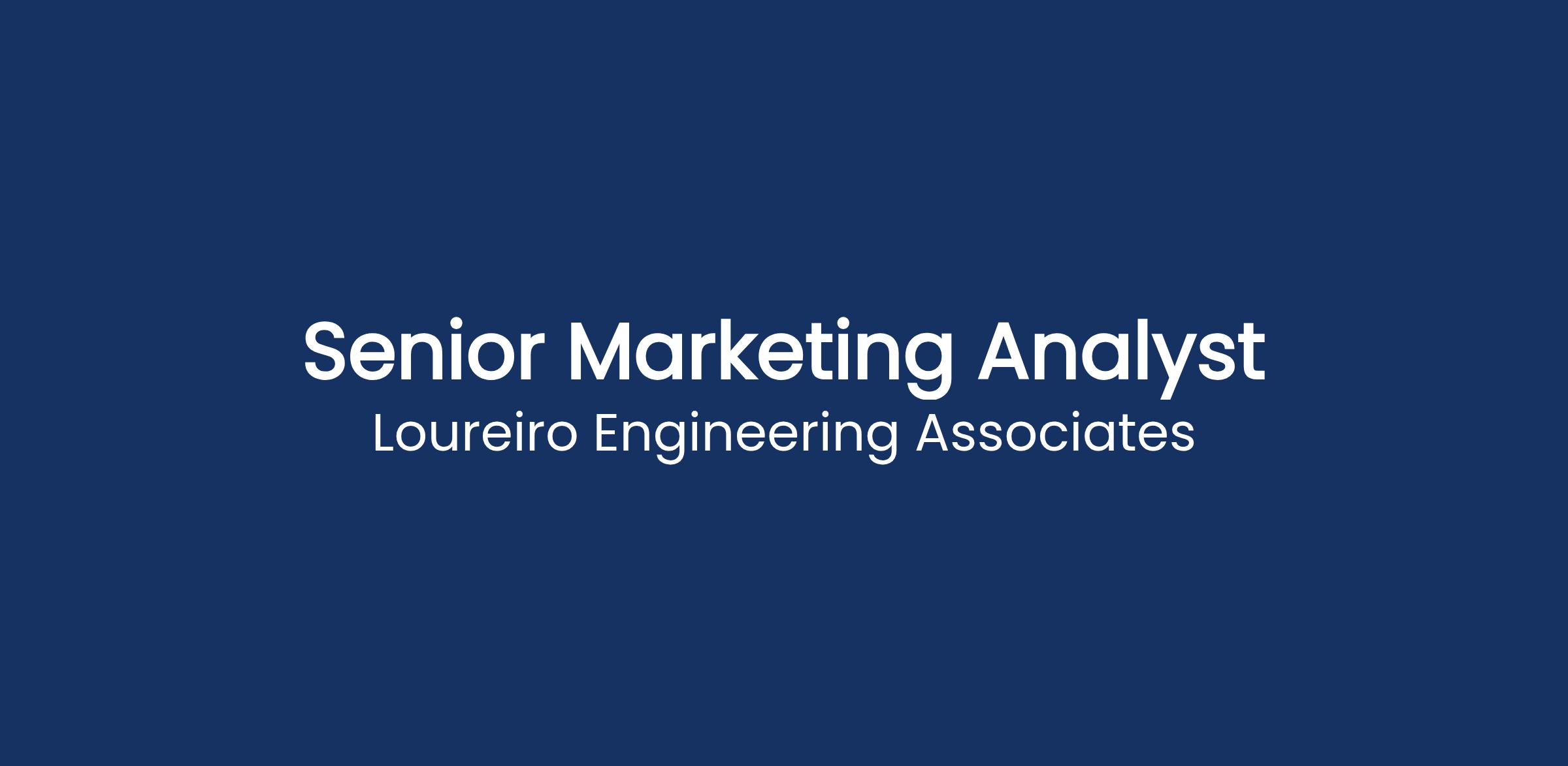 Loureiro Engineering Associates is seeking a Senior Marketing Analyst to join our team in Plainville, CT. In this role, you will lead the development of marketing campaigns, provide actionable insights to support strategic Business Development planning, and collaborate across departments to enhance performance tracking, refine targeting, and drive continuous improvement.What Youβll Do