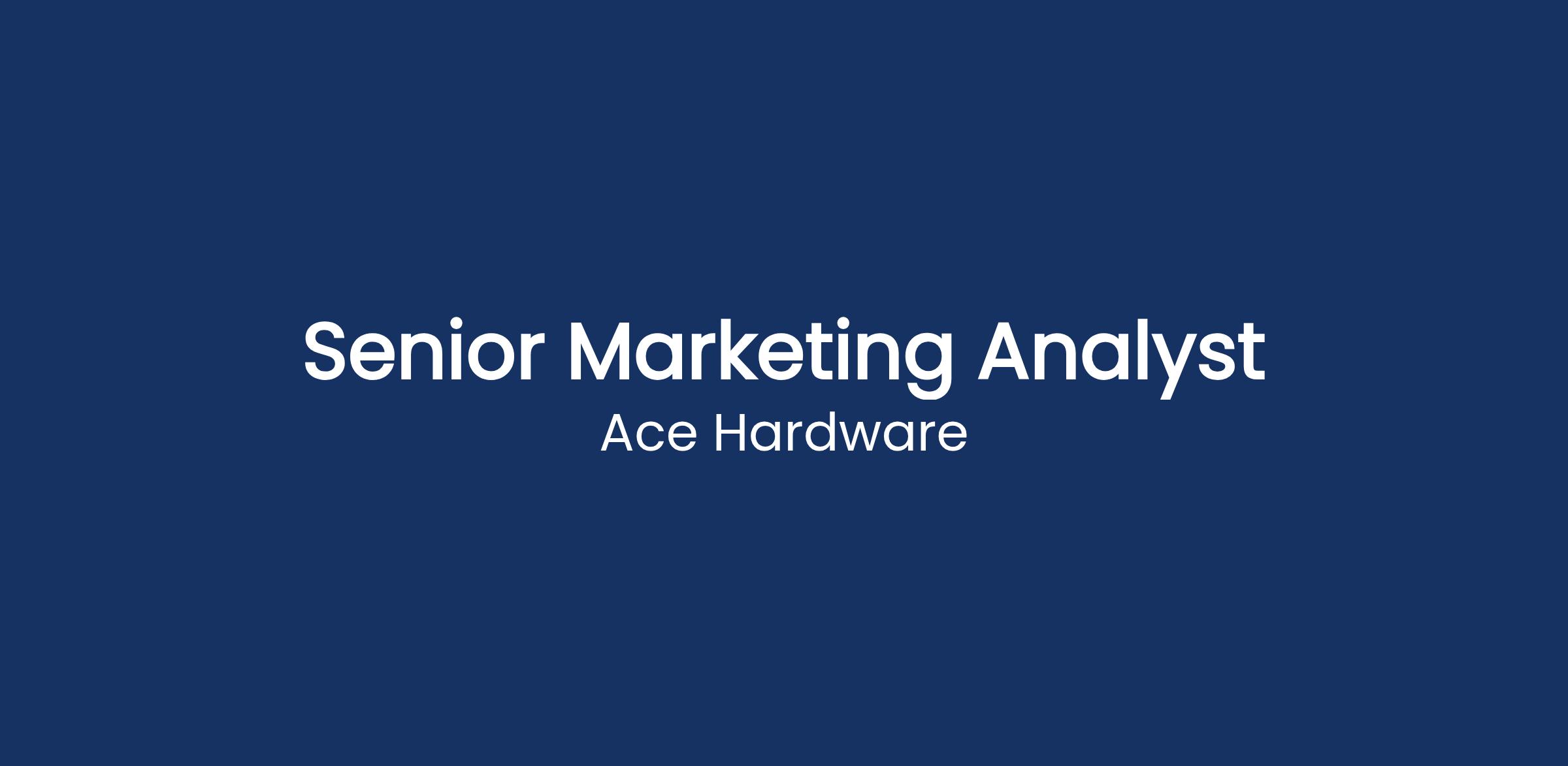 The Senior Marketing Analyst provides analytical support and strategic insights to the Consumer Marketing and Ace Rewards teams. This position will work cross functionally with internal business partners to leverage data and insights to aid in developing strategic Marketing campaigns in order to drive traffic and profitable sales for our retailers. In addition, the analyst is responsible for executing and analyzing Ace Rewards customer loyalty, marketing campaigns and interpreting results. Will be responsible for performing in-depth analyses, interpreting results, leveraging industry knowledge and utilizing historical data to turn insights into action. The Senior Analyst will be able to synthesize data and present the insights story, clearly and concisely.