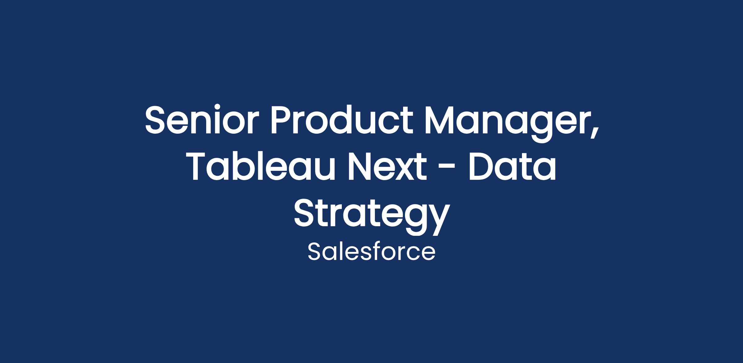 Weβre seeking a Senior Product Manager for Tableau Next to shape the future of the analyst data journey. In this role, youβll set the vision and strategy for turnkey analytics ,ensuring data is analysis-ready from day one. Youβll own the end-to-end experience, accelerating the path from setup to trusted insights. Youβll partner closely with engineering, design, and cross-cloud teams to deliver an innovative, intelligent agentic experience, deeply integrated with Salesforce and Data Cloud.