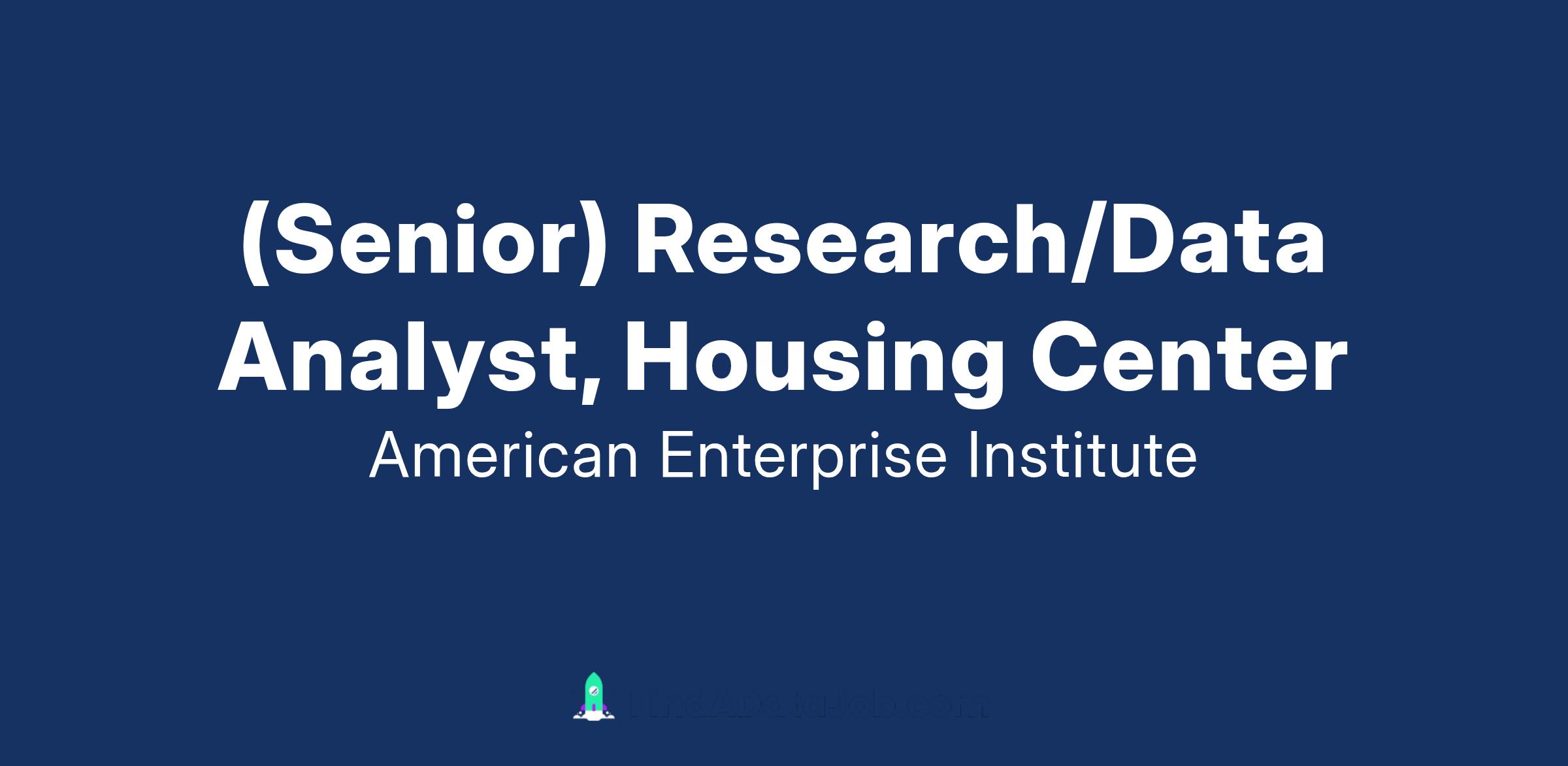 The AEI Housing Center seeks a full-time, in-person (senior) research/data analyst to assist in creating, managing, and analyzing large datasets to derive insights and inform US housing policy. Responsibilities will include creating, cleaning, and analyzing new datasets; conducting statistical analyses; and helping draft research papers and other materials. The weight of these responsibilities may vary depending on whether the position is filled by a (senior) research analyst or (senior) data analyst. A (senior) research analyst will focus on researching and writing, and a (senior) data analyst will focus on analyzing data.