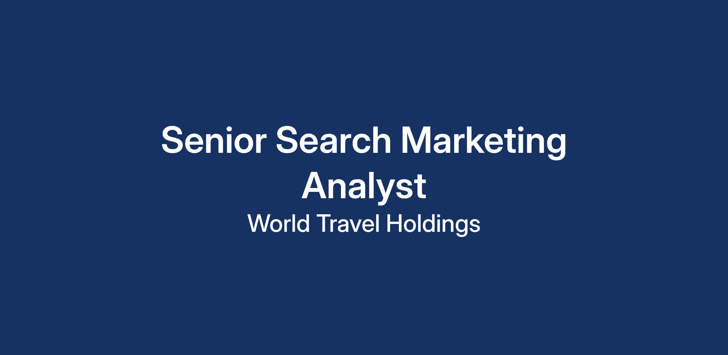 World Travel Holdings is seeking a Senior Search Marketing Analyst with 5β7 years of experience managing sizable and complex Search Engine Marketing (SEM) programs. The ideal candidate is data-driven, curious, and passionate about leveraging analytics and emerging technologiesβespecially AIβto optimize campaign performance to maintain a competitive advantage in the rapidly evolving digital landscape.