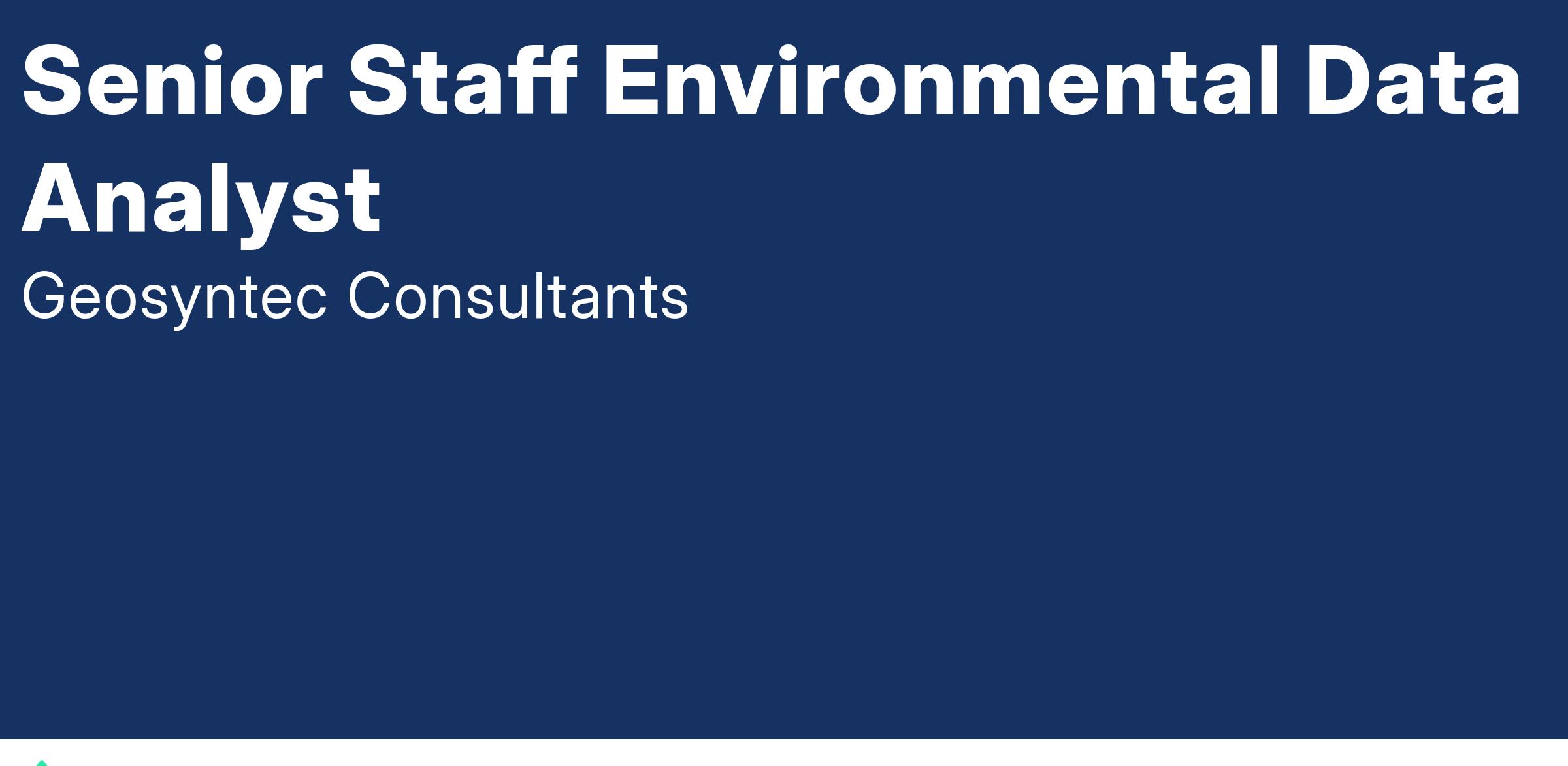 Geosyntec has an exciting opportunity for a Senior Staff Environmental Data Analyst in our New England branch with offices in Acton and Hamilton, MA and Bedford, NH.Β The position will apply your academic knowledge and solid understanding and experience with standard practices and techniques used when working with data to support and manage projects that include environmental assessments, groundwater remediation, water resources, geotechnical construction, and more.Β