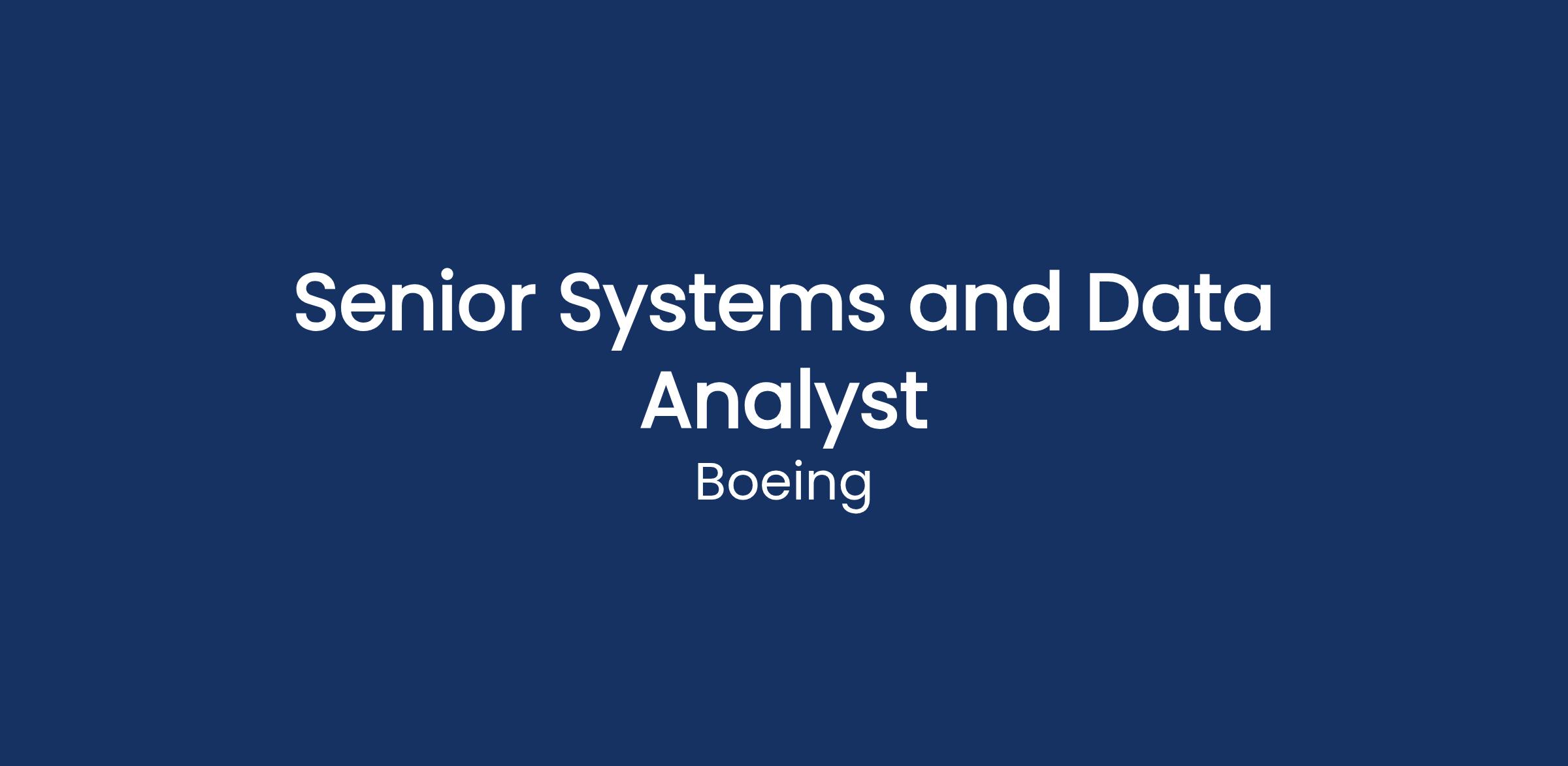 The Boeing CompanyThe Boeing Company is looking for a highly experienced and detail-oriented Senior Systems and Data Analyst to join the team in Seattle, WA or Hazelwood, MO.