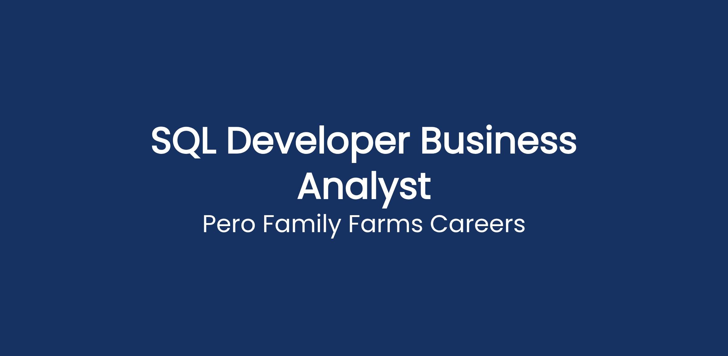 The SQL Developer Business Analyst plays a central role in designing, developing, and optimizing the data systems that support Pero Family Farmsβ continued growth. This position blends SQL development, data modeling, analytics, cloud solutions, and business application administration to ensure our teams have accurate, actionable information.