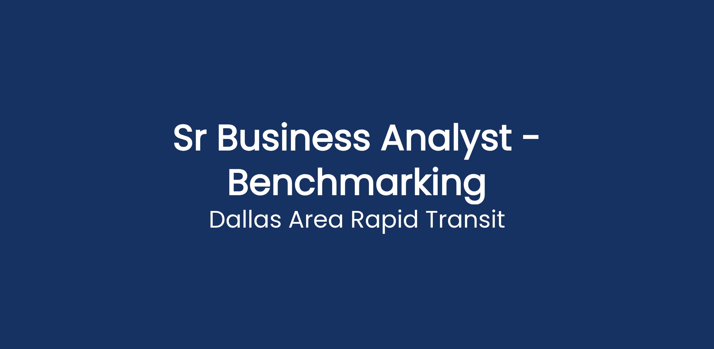 Develops data repository of all benchmarking data working with Technology and other departments. Analyzes performance of DART against other peer agencies to extract insights. Presents and shares industry information and trends to DART leadership.