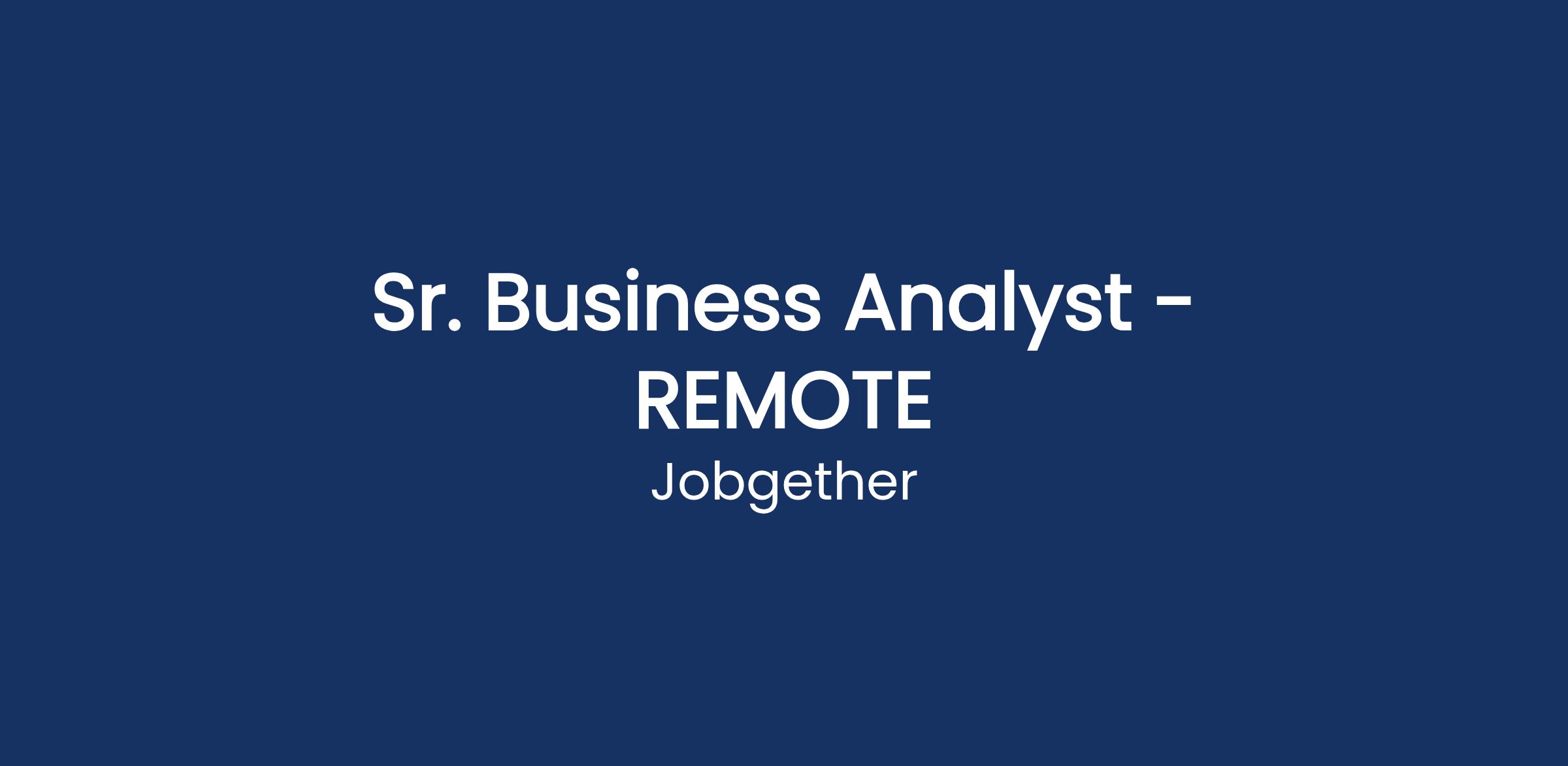 Sr. Business Analyst - REMOTE