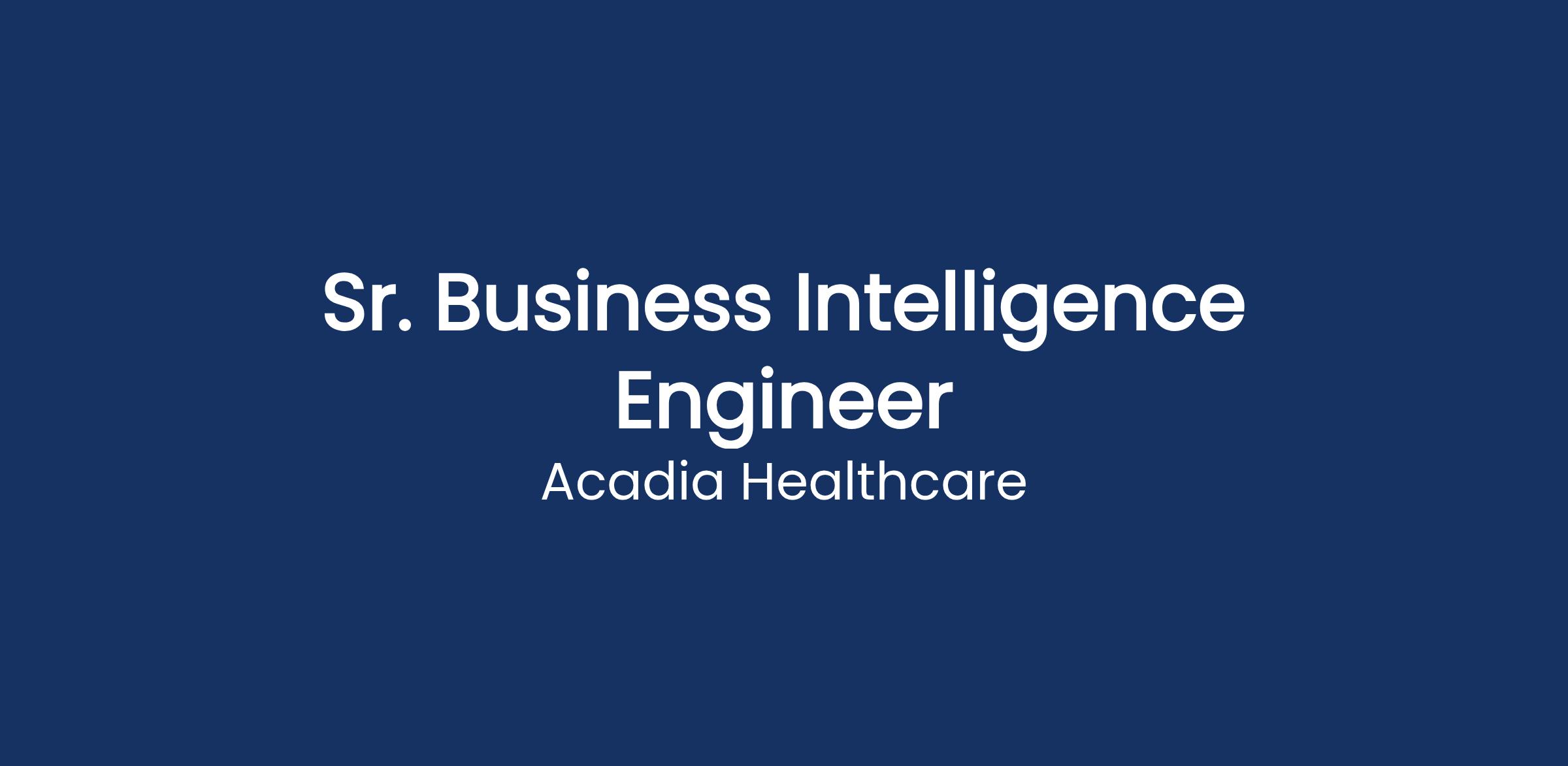 Senior Business Intelligence Engineer
