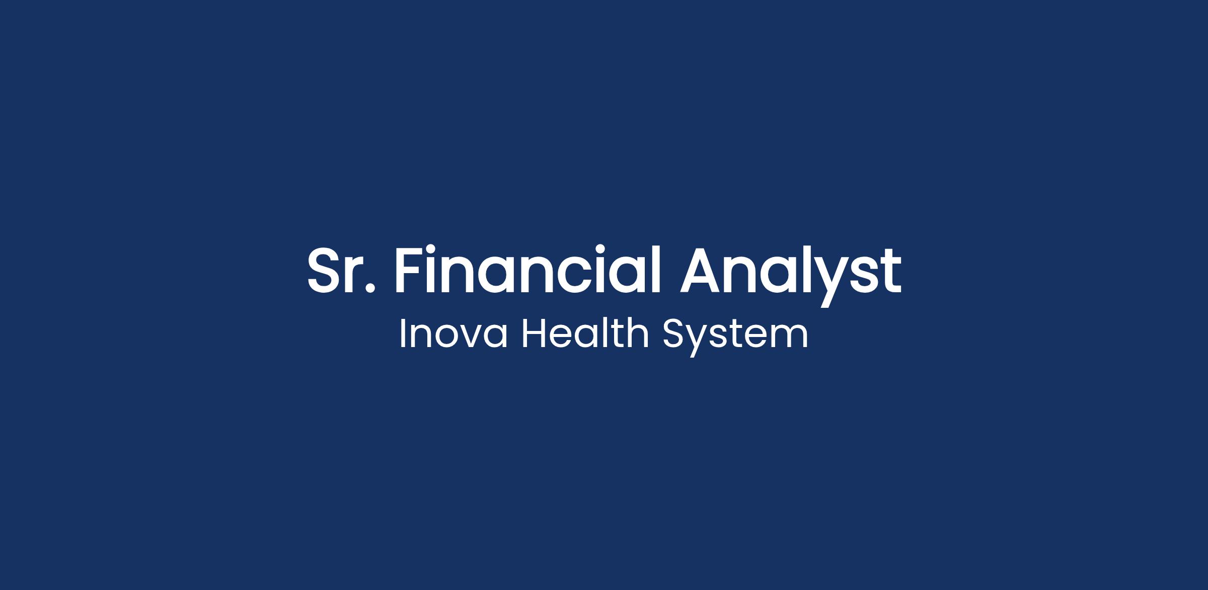 DescriptionInova Financial Operations is looking for a dedicated Sr. Financial Analyst to join the Team. This hybrid role will be full-time working day-shift Monday β Friday.