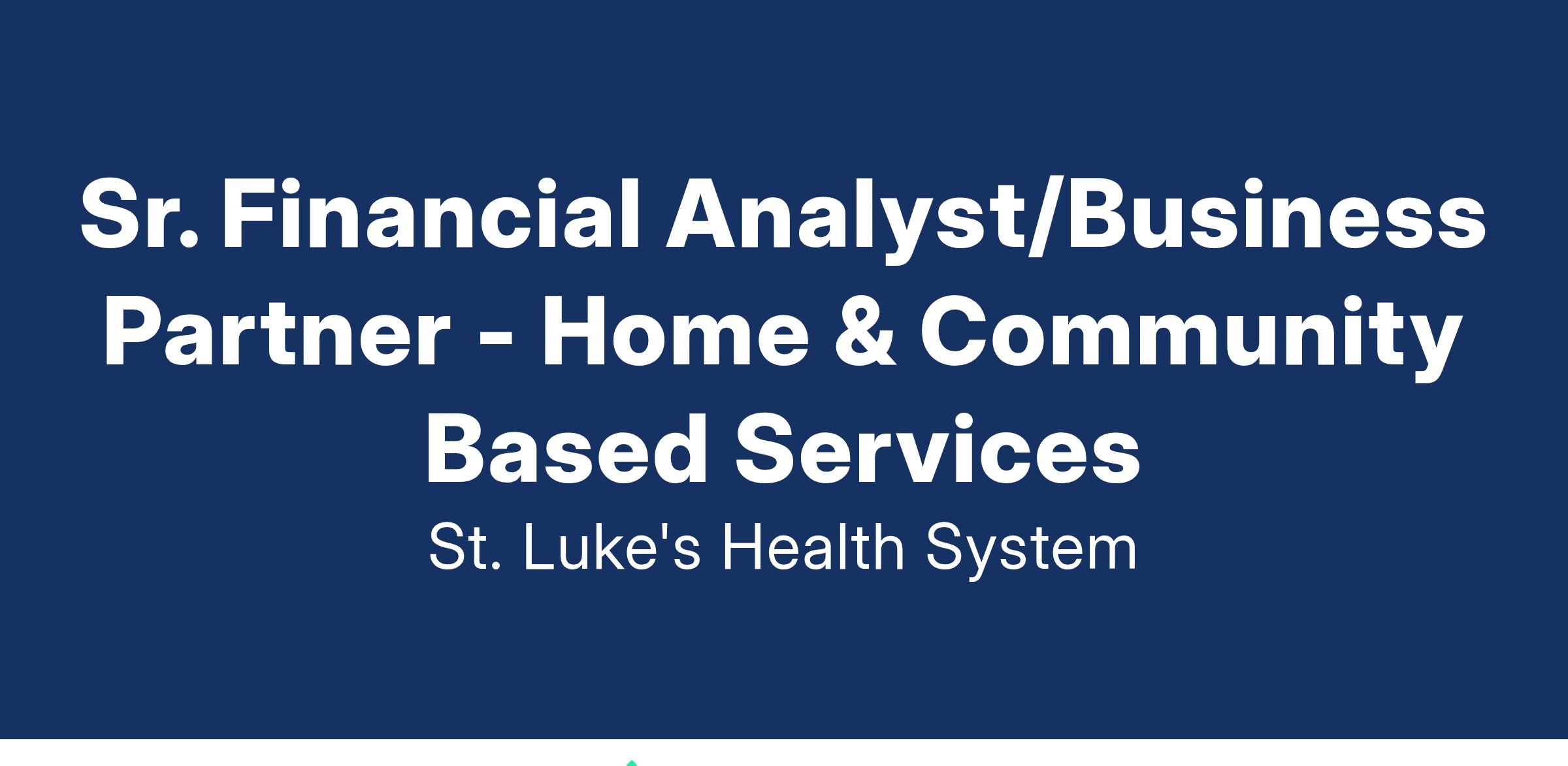 The Sr. Financial Analyst/Business Partner plays a critical role in shaping the operations of St. Luke's Health System. The successful candidate will bring advanced financial acumen and analytical skills, combined with exceptional communication, influencing, and collaboration to inform decision-making within operations to ensure that financial performance benefits our health systemβs mission. Finance Business Partners collaborate with operational leaders to understand their challenges and utilize analysis and problem-solving skills to achieve optimal results.