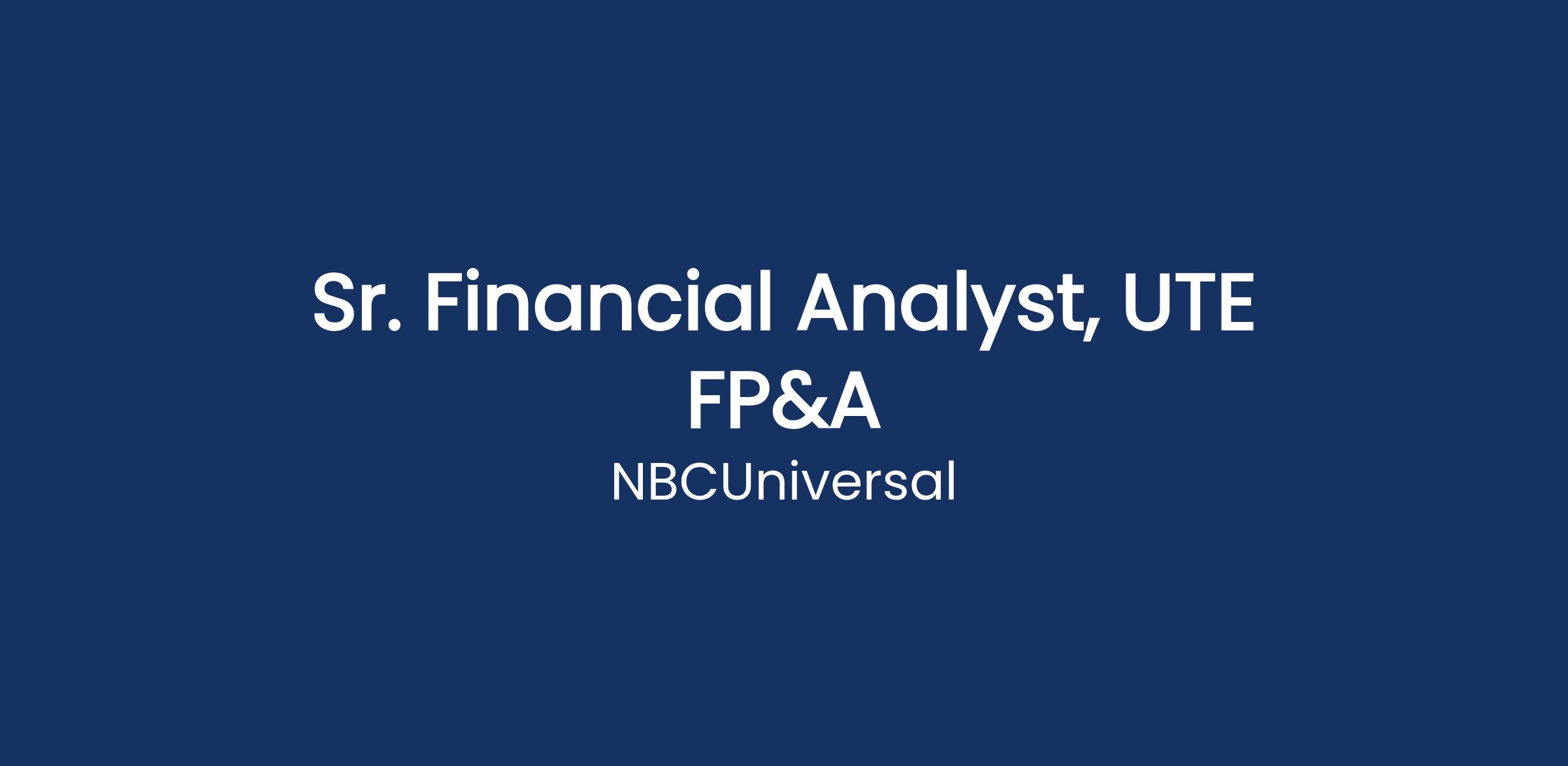 The Senior Financial Analyst, UTE FP&A will play an integral role in managing the financial planning & analysis across the UTE platforms including NBCE and Bravo. This role will help with the consolidation and reporting of the platform P&Lβs. The candidate will develop a deep understanding of all areas across the Networks (Ad Sales, Programming, Marketing, etc.) to help drive operational alignment across businesses.