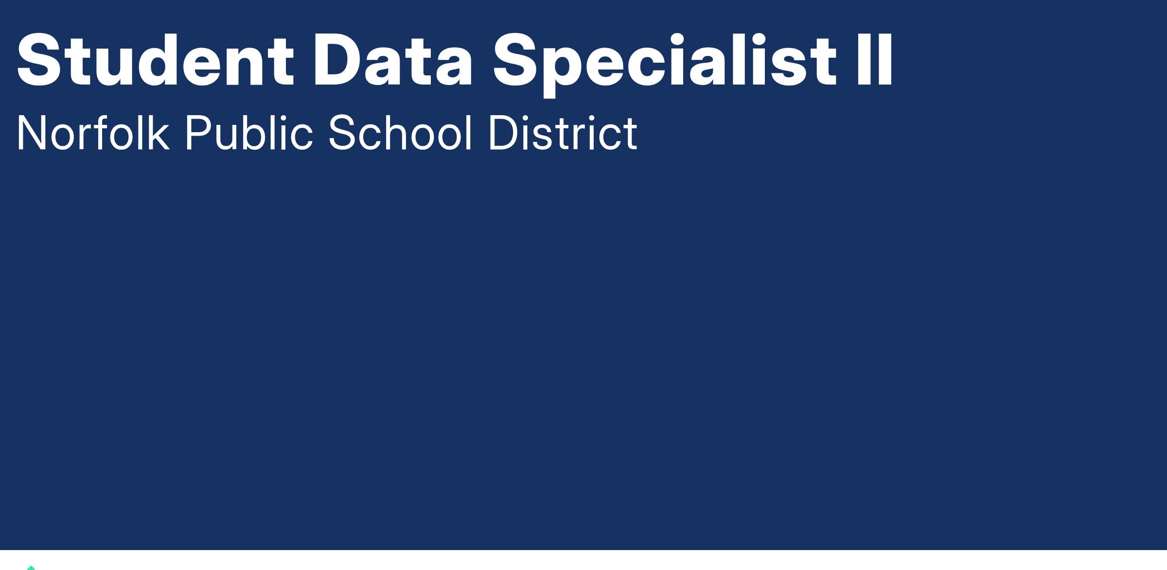The position is responsible for serving as a student data information specialist executing a variety of intermediate level clerical and secretarial support tasks in a Norfolk Public School or Center; to include registering students, processing withdrawals, sending and receiving transcripts, and performing attendance and student accounting tasks.Β