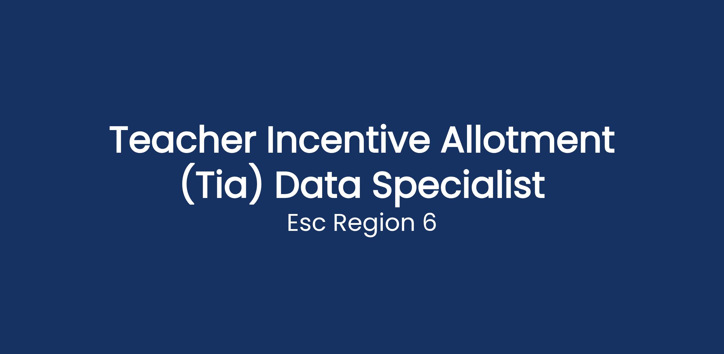 The Teacher Incentive Allotment (TIA) Data Specialist supports ESC Region 6 and component districts by managing, validating, and reporting data related to the Texas Teacher Incentive Allotment. This position ensures data accuracy, compliance with Texas Education Agency (TEA) requirements, and effective implementation of local designation systems through data analysis, technical assistance, and training.