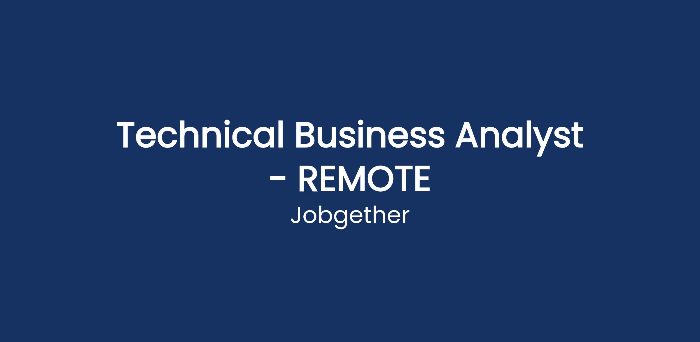 Technical Business Analyst - REMOTE