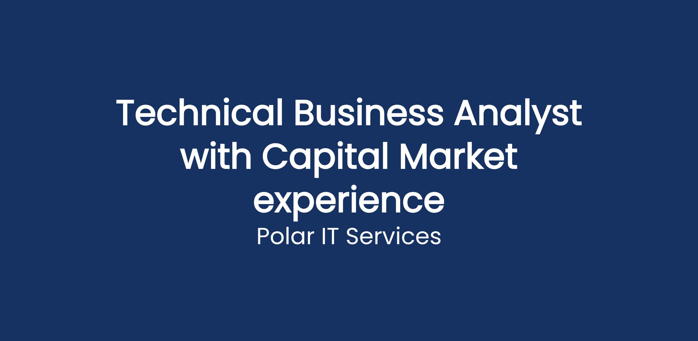 Job Title: Technical Business Analyst with Capital Market experience (Itβs a backfill role) Location: Chicago, IL (Hybrid 3 Days Onsite) Visa: H4 EAD, GC, GC EAD and USC only Looking for 10+years of experience only
